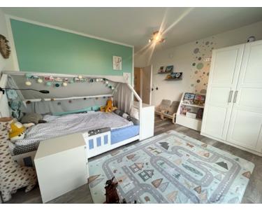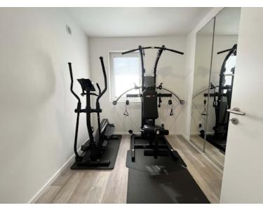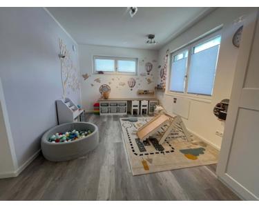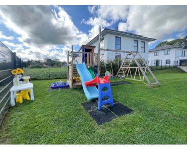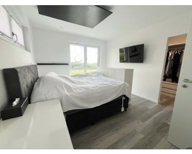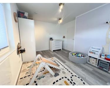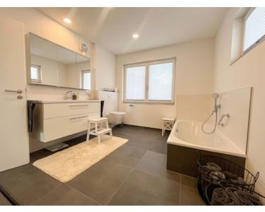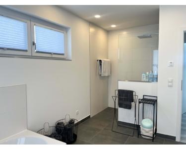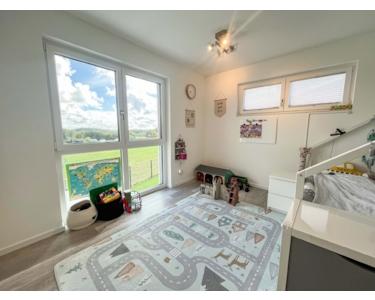 Im Obergeschoss erwarten Sie zwei Kinderzimmer, ein Schlafzimmer mit angrenzendem Ankleidezimmer, ein großzügiges Badezimmer mit Badewanne und Dusche sowie ein zusätzlicher Fitnessraum. Damit bietet das Haus ideale Voraussetzungen für Familien, die Wert auf Funktionalität und Komfort legen.
