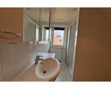 Das Obergeschoss umfasst ein Badezimmer mit Badewanne sowie zwei weitere Zimmer, die individuell genutzt werden können.