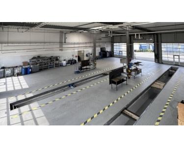 Repräsentativer Verwaltungsbereich (rd. 550 m²) mit zeitgemäßen Sozialräumen, Büros größtenteils klimatisiert, Besprechungsraum, 5 Einzelbüros, Großraumbüro, Aufenthaltsraum sowie großes Betriebsleiterbüro. Werkstatthalle mit rd. 800 m² inkl. 6 Toren und 2 Gruben, Lagerraum, Waschstraße, asphaltierte Hoffläche mit insgesamt rd. 70 LKW Stellplätze, Mitarbeiterparkplätze, Tankstelle 100.000 l, Fahrerunterkunft mit bis zu 24 Betten, ggü. liegende LKW-Parkfläche für 50 Fahrzeuge, Pförtnerhaus