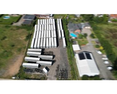 Das gesamte Grundstück ist eingefriedet und über eine Tor- / Schrankenanlage gesichert. Im vorderen Grundstücksbereich befinden sich ca. 70 asphaltierte LKW Stellplätze, im rückwärtigen Bereich stehen zusätzlich noch ausreichend Mitarbeiter- u. Kundenstellplätze (PKW) zur Verfügung. Eine Tankstelle sowie eine Fahrerunterkunft direkt auf dem Gelände vervollständigen dieses Angebot.