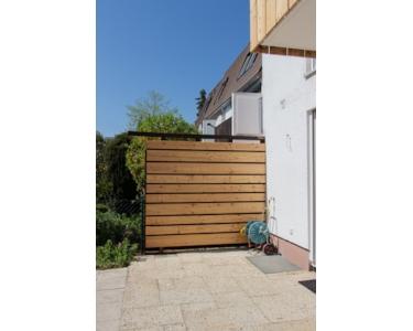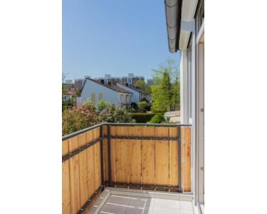 Der geflieste Süd-Balkon in einem der Kinderzimmer erhielt ebenso im Jahr 2020 eine neue Balkonbrüstung mit Holzvertäfelung.