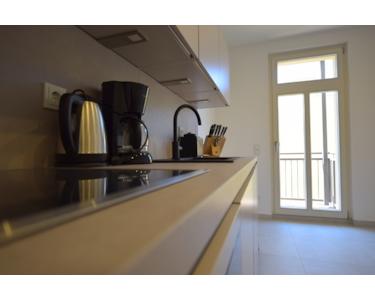 Die moderne Einbauküche ist im Mietpreis enthalten und mit hochwertigen Elektrogeräten ausgestattet. Von hier aus haben Sie direkten Zugang zum Balkon, der sich ideal zum Entspannen, Kaffeetrinken oder für gemütliche Abende im Freien eignet.