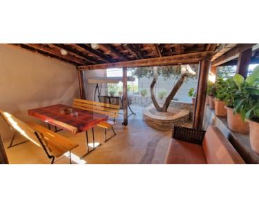 Sie besteht aus Erdgeschoss, Obergeschoss, überdachter Terrasse sowie einem Grundstück für Parkplatz oder Garten.