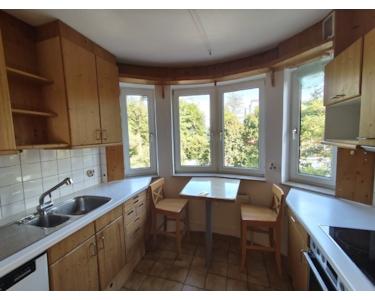 Parkett und Laminatboden; großer Südwestbalkon; einfache Einbauküche; weißes Bad mit Wanne, Dusche und Waschmaschinenanschluss; Kellerabteil.