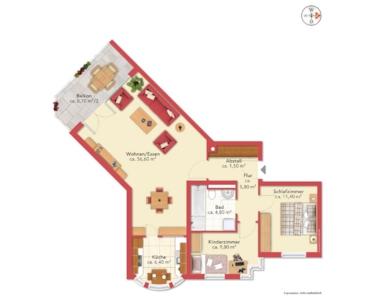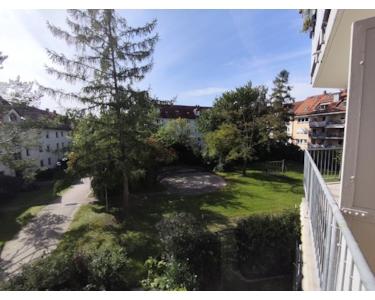 Vom Wohnbereich aus gelangen Sie direkt auf den großen Süd-West-Balkon. Die ruhige Innenhoflage macht den Balkon zu einer wahren Wohlfühloase mit Blick ins Grüne – perfekt zum Entspannen und Genießen.