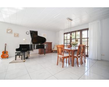 Das Erdgeschoss beeindruckt mit einem weitläufigen Wohn- und Essbereich, edlen Marmorfliesen sowie einer modernen Klimaanlage. Große Terrassentüren öffnen den Blick ins Grüne und sorgen für eine lichtdurchflutete Atmosphäre. Die hochwertige Einbauküche verbindet Funktionalität mit modernem Design. Ergänzt wird die Ebene durch ein Gäste-WC, eine Garderobe, ein Kinderzimmer mit eigener Klimaanlage sowie den direkten Zugang zur großzügigen Doppelgarage mit Spitzboden und Zugang zum weitläufigen Garten.