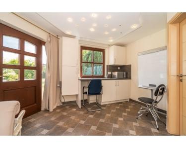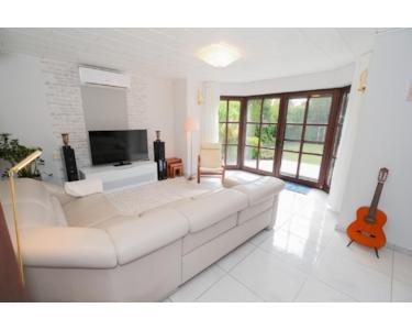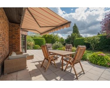 Die Ausstattung lässt keine Wünsche offen: Fußbodenheizung in allen Bereichen, elektrische Rollläden, zwei separate Klimaanlagen sowie ein hochwertiges Gartenhaus mit Bad, Schlafmöglichkeit und eigener Fußbodenheizung bieten höchsten Wohnkomfort. Ein weiteres massives Gartenhaus dient als praktischer Stauraum für Gartenutensilien. Die sonnige Terrasse mit Markise lädt zum Entspannen ein.