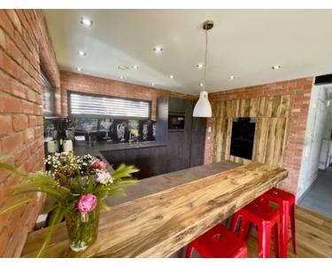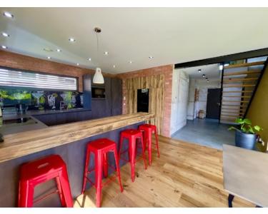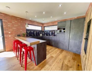 Die Küche ist ein Highlight für Gourmetliebhaber, ausgestattet mit einer hochwertigen Einbauküche von BALLERINA in edler Betonoptik. Diese überzeugt nicht nur durch modernes Design, sondern auch durch erstklassige Ausstattung mit energieeffizienten Geräten von BOSCH. Die langlebige dünne Arbeitsplatte und das flächenbündige BÄRBEL Induktionskochfeld mit integriertem Dunstanzug machen die Küche nicht nur optisch ansprechend, sondern auch funktional.