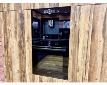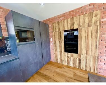 -Hochwertige Einbauküche in Premium Qualität von BALLERINA, in Beton Grafiphitschwarze Optik hat Grifflose Türe und Schubladen mit Tipmatic Soft-Close. Langlebige 12 mm dünne Arbeitsplatte, Kochfeld flächenbündig BÄRBEL Induktionskochfeld mit integriertem Dunstanzug. FRANKE Unterbauspüle mit verdecktem Überlauf, Ablaufgarnitur. BOSCH XXL-Geschirrspüler A+++, BOSCH Einbau-Kühlautomat Smart Cool A++, BOSCH Einbau Mikrowelle Serie8, BOSCH Dampfbackofen Serie8 A+, BOSCH Kaffeevollautomat. Viel Platz zum Kochen für die ganze Familie. Viel Stauraum in den Schränken und eine geheime Vorratskammer mit Gefrierschrank.