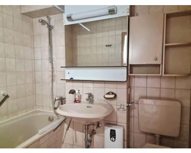 Badezimmer: Das Badezimmer verfügt über eine Badewanne mit Dusche, Waschbecken und WC. Die Wände und der Boden sind in hellem beige gefliest. Es besteht die Möglichkeit das Bad nach eigenen Vorstellungen neu zu gestalten.