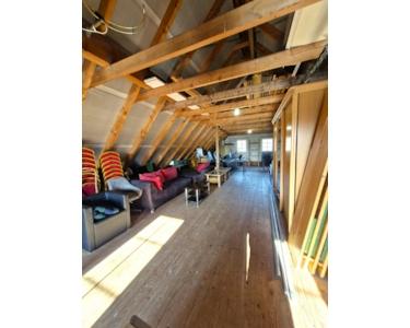 Der Dachboden des Partyhauses ist noch nicht ausgebaut. Dieser wurde bisher als Lagerraum genutzt, hier stehen nochmals über 100 qm zur freien Verfügung. Dort könnte z.B. eine weitere (Ferien-)Wohnung oder ein Homeoffice entstehen
