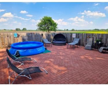 Der Poolbereich grenzt an das Partyhaus an und ist blickdicht mit Holzbohlen eingezäunt. Für den Pool gibt es ein extra Badezimmer mit WC und Dusche.