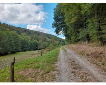 Die Immobilie wird von einer Seite durch einen Bach und auf der anderen Seite durch einen Wald Hang begrenzt.