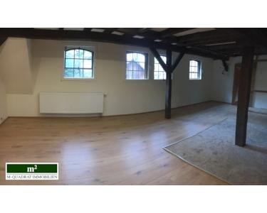 Die links im Gebäude vorhandenen Räumlichkeiten, in denen historisch der Mühlenbetrieb stattfand, versprühen Fachwerkcharme und bieten zugleich Platz für individuelle, moderne Arbeitsplätze, Ladenflächen und eigener Ideen bei flexibler Raumaufteilung.