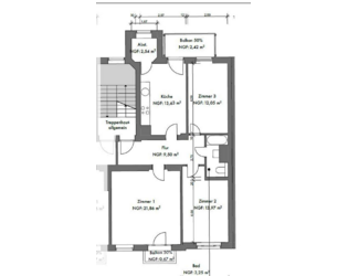 Der Verkaufsgegenstand verfügt über eine Wohnfläche von ca. 77,47 m², bestehend aus 3 Zimmern, Küche, Bad, Balkon und Flur. Zusätzlichen Stauraum bietet ein Kellerraum im Kellergeschoss des Hauses. Die gesamte Wohnung ist derzeit gefliest und bietet im Allgemeinen viel Potential für individuelle Gestaltungsmöglichkeiten.