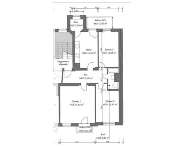 Der Verkaufsgegenstand verfügt über eine Wohnfläche von ca. 77,57 m², bestehend aus 3 Zimmern, Küche, Bad, Balkon und Flur. Zusätzlichen Stauraum bietet ein Abstellraum innerhalb der Wohneinheit. Zugehörig ist ebenfalls ein eigener Kellerraum, im Untergeschoss des Gebäudes.