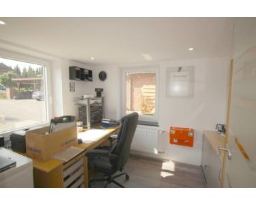 Auf einem großzügigen Grundstück von etwa 650 m² bietet die Werkstatt mit 1,5 Etagen und insgesamt rd. 80 m² Nutzfläche zzgl. sep. Container ausreichend Platz als vielfach zu verwendende Werkstatt mit großem Außenbereich. Der Boden ist mit robustem Vinyl (Büro), eleganten Fliesen (Werkstatt u. WC) und widerstandsfähigem Holz (Lager) ausgestattet, was sowohl praktische als auch ästhetische Ansprüche erfüllt. Das Objekt ist zudem mit einem Gäste-WC ausgestattet, ein Vorteil, der Ihnen und Ihren Kunden zusätzlichen Komfort bietet.