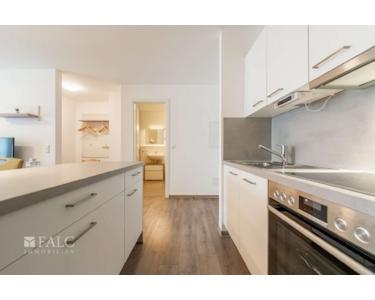 Der Wohn- und Schlafbereich ist mit hochwertigem Laminat ausgestattet, während das Badezimmer mit modernen Fliesen versehen ist. Eine Fußbodenheizung sorgt für angenehme Wärme in der gesamten Wohnung.