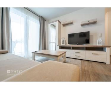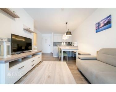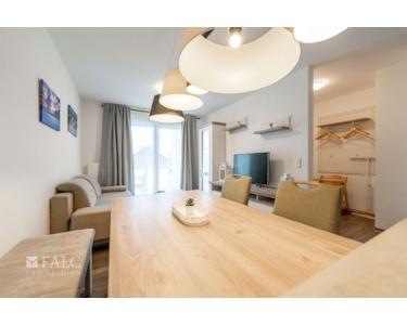 Auf insgesamt 47 m² bietet die Wohnung ein helles Wohnzimmer mit offener Küche, ein gemütliches Schlafzimmer sowie ein modernes Badezimmer mit Dusche. Die bodentiefen Fenster im Wohnzimmer sorgen für eine lichtdurchflutete Atmosphäre und bieten einen herrlichen Ausblick auf die umliegende Natur.