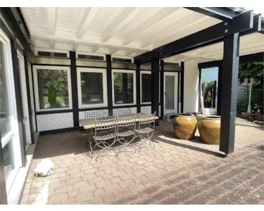 -Ausführung der Bauweise: Holzskelett mit Poroton-Mauerwerk, Holzfenster in weißem Meranti-Holz und Doppel-Isolierglas. Dachdämmung mit Korkplatten, Dacheindeckung mit Tondachziegelpfannen,