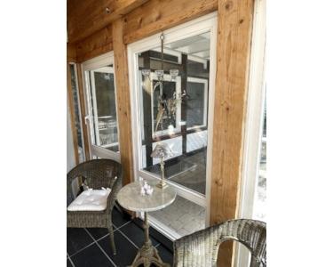Ein besonderes Highlight ist der Wintergarten, der bis zum Obergeschoss hochragt und über eine stilvolle Holztreppe zur Galerie führt. Der Fußboden des Wintergartens ist mit Naturschiefer verlegt, der die Wärme der Sonne speichert und diese wieder abgibt. Hier finden Sie einen kleinen Springbrunnen, der bei Bedarf vor sich hin plätschert.