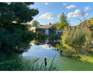 Überdachter Freisitz am Teich