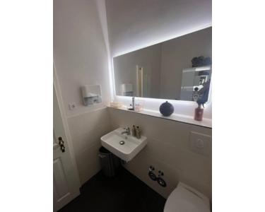 Die gesamte Fläche ist mit Echtholzparkett ausgestattet. Auch das WC besticht durch hochwertige Materialien und großformatige Fliesen. Eine Übernahme des Inventars gegen eine Abstandszahlung ist nach Absprache möglich.