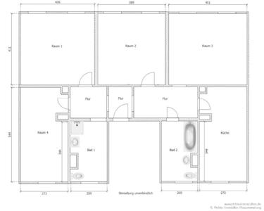 Die Wohnung entstand durch das Zusammenlegen zweier Wohneinheiten. Sie verfügt über 4 Zimmer, die Ihnen vielfältige Nutzungsmöglichkeiten bieten. Zudem stehen Ihnen 2 Badezimmer, jeweils mit Fenster, zur Verfügung. Eins ist mit einer Dusche, das andere mit einer Badewanne ausgestattet.