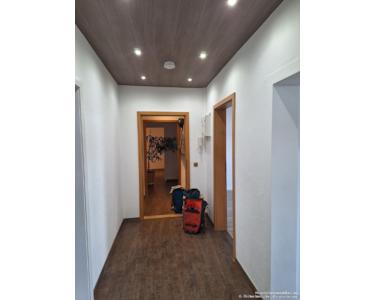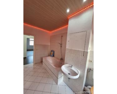 Einbau-Deckenstrahler in mehreren Räumen sowie eine Ambiente-Beleuchtung im Wannenbad sorgen für eine angenehme Lichtstimmung.