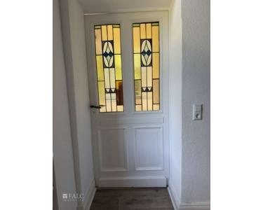 • Fenster: Teilweise Original erhaltene Fenster mit kunstvoller Verglasung und historischer Ornamentik – ein seltenes Schmuckstück