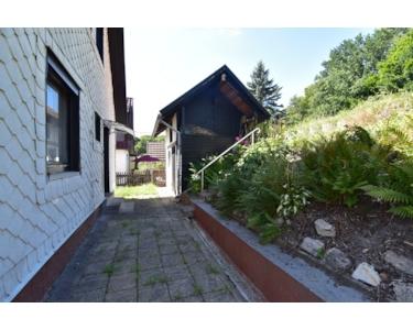 Geräteschuppen = Massivbau mit Fenster, 2 Räume, Dachboden (Zugang vom Grundstück), Stromanschluss