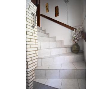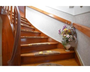 Erdgeschoss = aufgearbeitete Holztreppe, beidseitiger Handlauf, Stufenschoner