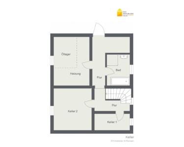 Kellergeschoss: Flur, Bad, Heizungsraum, 2 Kellerräume