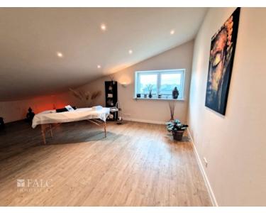 Im Obergeschoss befindet sich auf knapp 200 m² ein modernes Fitnessstudio, das durch einen großzügigen Wellnessbereich ergänzt wird. Auf 130 m² bietet der Wellnessbereich eine Sauna, eine Infrarotkabine mit Infrarotstühlen sowie einen 40 m² großen Massageraum, der das Angebot für die Mitglieder perfekt abrundet und zusätzliche Einnahmen generiert. Zudem stehen zwei Umkleiden (75 m²) mit Duschen und WCs zur Verfügung, die den Komfort der Mitglieder weiter steigern.