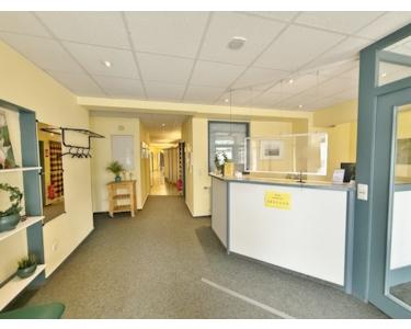 Derzeit wird die Einheit als Physiotherapiepraxis genutzt. Durch einen offenen und einladenden Eingangsbereich ist der große Empfangsbereich zu erreichen. Der geräumige Ausstellungsraum wurde im Zuge der Praxis-Errichtung in mehrere Kabinen unterteilt. Des Weiteren befinden sich zur linken Seite ein Büro, eine Waschküche, ein WC sowie im rückwärtigen Bereich ein weiterer Raum.