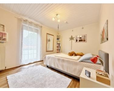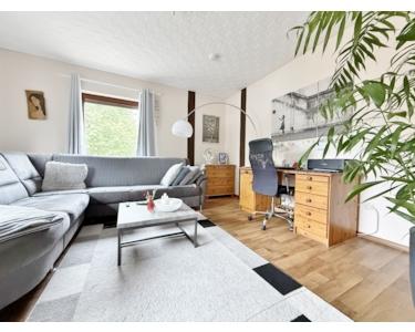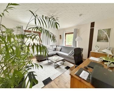 Über einen separaten Nebeneingang gelangen Sie in einen großen Windfang mit Zugang in die obere Etage, wo sich eine attraktive und großzügige ca. 77 m² große Drei-Zimmerwohnung befindet.