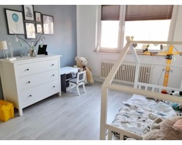 Das angrenzende Kinderzimmer befindet sich zur nördlich ausgerichteten Seite und sorgt somit auch an heißen Tagen für einen erholsamen Schlaf.