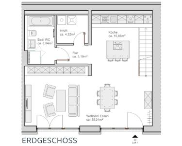 Auf der eigenen Terrasse genießen Sie sonnige Stunden und einen idealen Rückzugsort im Freien. Das Gebäude verspricht erstklassigen Erstbezug und bietet auf zwei Etagen eine moderne, flexible Fläche, die sich sowohl zum Wohnen als auch für die Nutzung als Büro oder Kombination eignet.
