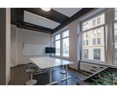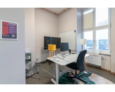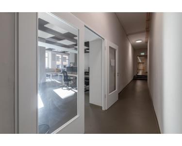Im 1. Obergeschoss eines charaktervollen Gebäudes erstreckt sich eine großzügige Bürofläche von 663 m², die mit einer einzigartigen Kombination aus historischen Elementen und modernen New-Work-Ansätzen beeindruckt.