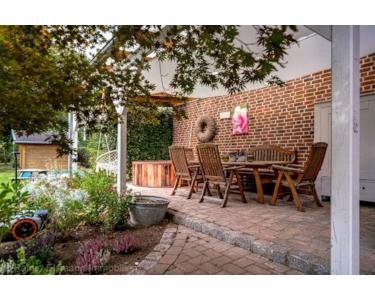 Das Grundstück überzeugt mit einer überdachten Terrasse, die zum Verweilen im Freien einlädt. Hecken und Zäune sorgen für eine angenehme Privatsphäre. Die liebevoll angelegte Gartenfläche mit Rasen und Sträuchern schafft eine gepflegte, grüne Atmosphäre. Ein Gartenhaus bietet zusätzlichen Stauraum, während ein Carport hinter der Garage flexible Nutzungsmöglichkeiten eröffnet.