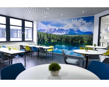Für die Mieter steht ein moderner Pausenraum mit gut ausgestatteter