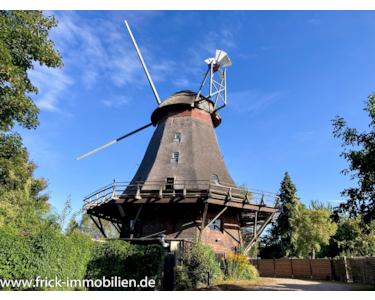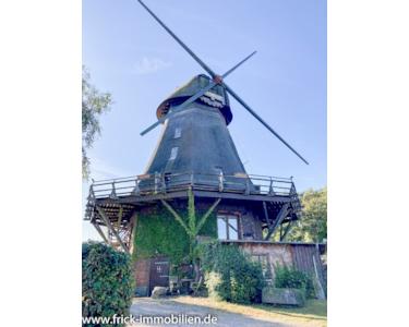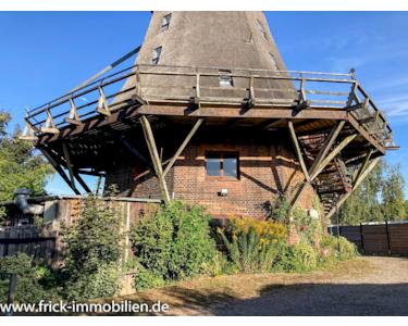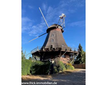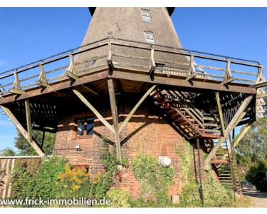 Das hier von uns im Rahmen eines qualifizierten Makler-Alleinauftrages angebotene Grundstück ist mit einer Galerie-Holländermühle bebaut. Die Mühle wurde bereits 1970 unter äußeren Denkmalschutz gestellt. Sie ist 5-geschossig und die unteren beiden Geschosse wurden zuletzt (bis 2023) gewerblich als Restaurant mit Kneipencharakter genutzt. Die darüber gelegenen Geschosse wurden bereits vor vielen Jahren wohnlich gestaltet und dienten dem Betreiber als Wohnung über 3 Ebenen. Die Mühle ist teilunterkellert (1 Raum). Die unteren beiden Ebenen sind massives Backsteinmauerwerk und die darüber liegenden Geschosse Holz-Balkenkonstruktionen mit Reet-Außenwänden. 2017 wurde neues Reet eingedeckt. 2013 erfolgte eine Kernsanierung und bereits 1995 erhielt die Mühle ein neues Flügelkreuz. Dennoch sind im inneren, wie auch im äußerem Bereich (z.B. auf der umlaufenden Galerie) wiederum Modernisierungs- und Sanierungsmaßnahmen erforderlich.