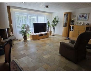 EG: großes Wohnzimmer mit Eßzimmer (Sollnhofener Platten) Kamin (Kamineinsatz 2010), Balkon (Fliesen), Küche (Fliesen), Abstellraum (Fliesen), Möbel können erworben werden,