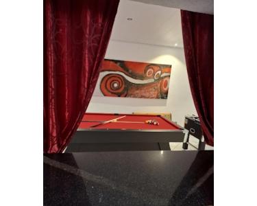 • Ein Eingangsraum mit 8 ft (8 Fuß) Billard-Tisch und Kicker und Bar