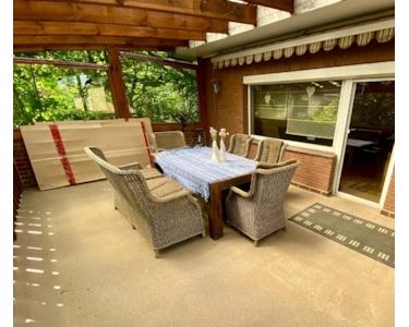 überdachte Terrasse am Wohnzimmer, überdachte Terrasse im Garten mit Gartenhaus, 2x Terrasse ohne Überdachung, Kamin von HWAM, Küche mit Abluft, Kühlschrank Side bei Side mit Eiscrusher, Fußbodenheizung oben in Bad, Küche und Wohnzimmer, Solar-Balkonkraftwerk, Garage mit zusätzlichen Abstellraum, Externer Zugang zum Untergeschoß, die Zufahrt ist asphaltiert, die Stellplätze gepflastert,