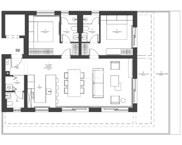Im ruhigen und charmanten Ort Zaton, nur 45 Meter vom Strand entfernt, befindet sich ein neues, modernes Gebäude mit zwei Eingängen und zwei Aufzügen, in dem sich zehn exklusive Apartments verbergen. Jedes wurde sorgfältig gestaltet, um ein Höchstmaß an Komfort und Genuss zu bieten – die Apartments im Erdgeschoss sind mit privaten Gärten ausgestattet, die Apartments in den mittleren Stockwerken haben geräumige Terrassen und die Penthouses bieten Dachoasen mit Installationen für Sommerküchen und Whirlpools, ideal für entspannte abendliche Zusammenkünfte bei Sonnenuntergang. Alle Apartments sind mit Klimaanlage in jedem Zimmer ausgestattet, während die Penthouses zusätzlich im gesamten Innenbereich über Fußbodenheizung verfügen. Das Penthouse A8 im zweiten Stock mit einer Nettofläche von 153,96 m2 kombiniert Funktionalität und Eleganz. Der Grundriss umfasst zwei Schlafzimmer, zwei Badezimmer, eine zusätzliche Toilette, eine Küche und ein luftiges Wohnzimmer. Besondere Merkmale sind die überdachte Terrasse, die Innen- und Außenbereich perfekt verbindet, sowie die großzügige Dachterrasse mit atemberaubendem Meerblick. Zur Wohnung gehören außerdem zwei Parkplätze – einer im Freien und einer in der Garage – sowie ein Abstellraum. Zur Ausstattung gehören Fußbodenheizung in der gesamten Wohnung, elektrische Rollläden, Sicherheitstüren und eine Video-Gegensprechanlage. Käufer haben zudem die Möglichkeit, die komplett möblierte Wohnung zu übernehmen, sodass sie sorgenfrei einziehen können. Ein besonderer Vorteil: Der Käufer ist von der Grundsteuer befreit, da der Verkäufer eine juristische Person ist. Zaton ist bekannt für seine langen Kiesstrände, das kristallklare Meer und die ruhige Atmosphäre, die traditionelles dalmatinisches Flair mit modernen Annehmlichkeiten verbindet. In unmittelbarer Nähe befindet sich ein Resort mit zahlreichen Annehmlichkeiten – Restaurants, Cafés, Sportplätzen und Wellness-Programmen –, was diesen Ort ideal für Urlaub und Leben das ganze Jahr über macht. Nur zehn Autominuten entfernt liegt Zadar, eine Stadt reich an Geschichte und Kultur, weltberühmt für ihre römischen Foren, romanischen Kirchen, die Meeresorgel und den Gruß an die Sonne. Wenn Sie eine Kombination aus Luxus, Komfort und mediterranem Lebensstil suchen, kontaktieren Sie uns für weitere Informationen und um eine Besichtigung zu vereinbaren.