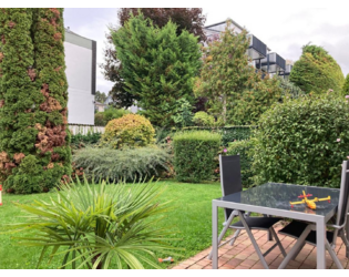 Der große Garten befindet sich im Eigentum der Wohnungseigentümergemeinschaft (WEG) und steht zur Mitbenutzung zur Verfügung. Da fünf der anderen Wohnungen eigene Balkone / Terrassenbereiche zugeordnet sind, ist bislang der Wohnungsnutzer dieser Ergeschoßwohnung fast immer der alleinige Nutzer des Gartenabschnitts gewesen. Rechtlich gehört das gesamte Grundstück der Wohnungseigentümergemeinschaft und wird durch einen Gärtner gepflegt, die Kosten der Gartenpflege werden auf alle Wohnungseigentümer gemeinsam umgelegt. Die Wohnanlage besteht aus sieben einzelnen Wohneinheiten (die angebotene Wohnung befindet sich mit zwei anderen Wohnungen und drei Garagen in einem Gebäudeteil, das im Jahr 2001 fertiggestellt wurde, vier Wohnungen befinden sich in einem 1968 erbauten, aber kontinuierlich ertüchtigten Gebäude).