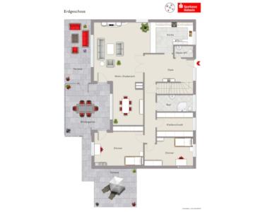 Im Erdgeschoss überzeugt der großzügige Wohn- und Essbereich mit angrenzender Küche und integrierter Durchreiche (optional eine offene Küche). Von hier aus gelangen Sie auf zwei Terrassen sowie in den lichtdurchfluteten Wintergarten mit Südausrichtung – ein Ort zum Entspannen und Genießen. Ergänzt wird diese Ebene durch zwei weitere Zimmer, eine Ankleide, ein Gäste-WC sowie ein modernes Duschbad mit Spots aus dem Jahr 2014. Das Dachgeschoss umfasst zwei große Zimmer, ein Wannenbad sowie ein weiteres Duschbad und bietet damit großzügige Rückzugsbereiche für die ganze Familie.