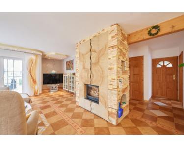 Innenausstattung: Das Haus überzeugt mit hochwertigen Materialien, darunter Massivholz-Innentüren und einem Holzofen mit Lüftungsschächten, die das Obergeschoss mit angenehmer Wärme versorgen.