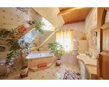 Erwärmung & Energieeffizienz: Das Haus wird durch Erdwärme mit Erdkollektoren beheizt, die Heiz- und Stromkosten sind mit ca. 500 Euro pro Jahr minimal. Fußbodenheizung sorgt für behagliche Wärme im gesamten Haus.